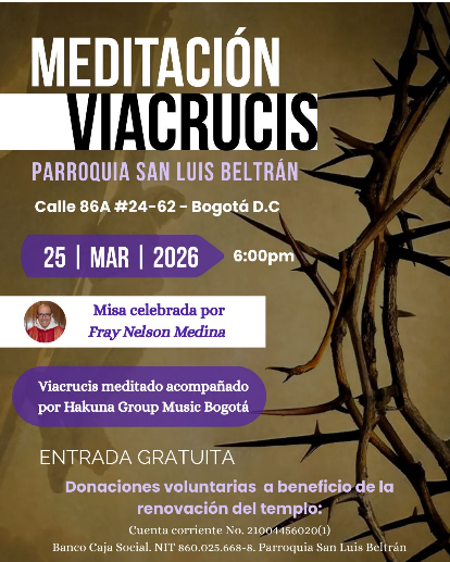 NoticiasMEDITACIÓN VIACRUCIS17 de Marzo de 2026Te invitamos al Viacrucis acompañado por Hakuna y la Eucaristía presidida por Fray Nelson Medina. Ven con tu familia y amigos a acompañar al Señor al Calvario. Like 0 Dislike 0